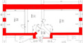 45,86 m2 2 pokoje, przedpokój, kuchnia |